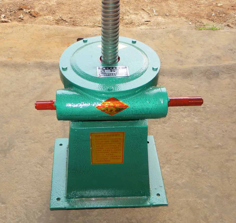 工作時通過搖動手把,直接傳動到承重螺母,螺母轉動帶動螺桿作上下運動,隨之被螺桿帶動的閘門作升降運動,達到啟閉閘門的目的。閘門啟閉的高度位置由螺桿頂部的指示盤與螺桿導管上的標線來顯示。