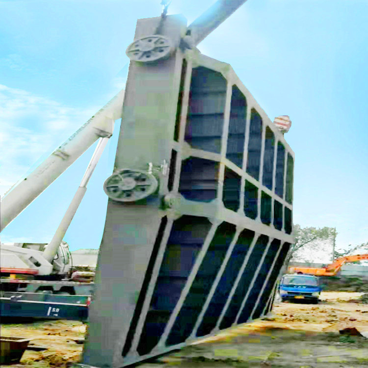 1、露頂式鋼閘門結構特點:門頂露出上游水位以上,沒有頂止水,只有側止水和底止水,面板曲率半徑R一般取門高的1.0~1.5倍。
