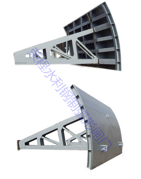弧形閘門是擋水面為圓柱體的部分弧形面的閘門。其支撐臂的支撐鉸鏈位于圓的中心,當閘門打開和關閉時,閘門圍繞支撐鉸鏈旋轉。弧形閘門由旋轉門體、內(nèi)嵌構件和啟閉設備三部分組成。弧形閘門由于啟閉力小,水力條件好,在各種水路中廣泛用作工作閘門。