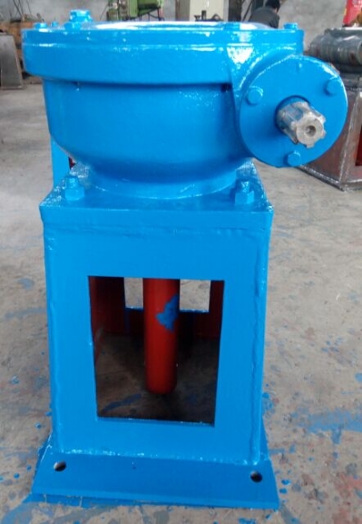 2、將手動螺桿啟閉機置于安裝位置。把一個限位盤套在螺桿上,將螺桿從橫梁的下部旋入機器中,當螺桿從機器的上方露出后,再套上限位盤。螺桿的下方與閘門連接。